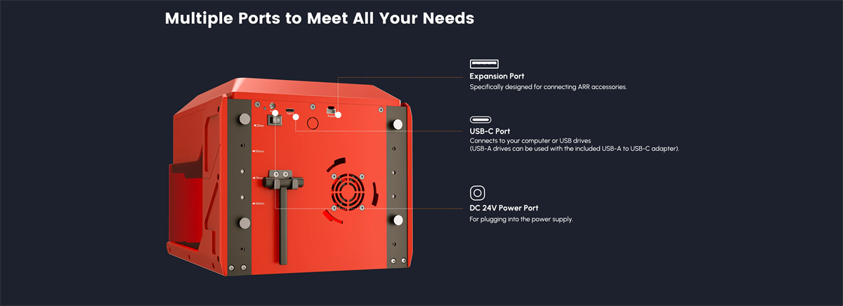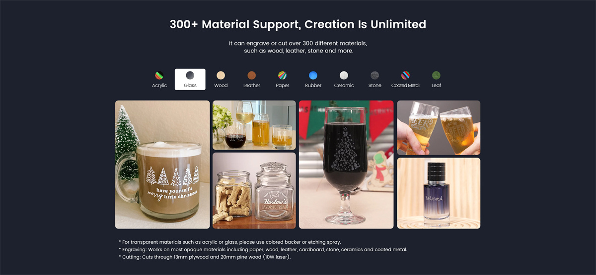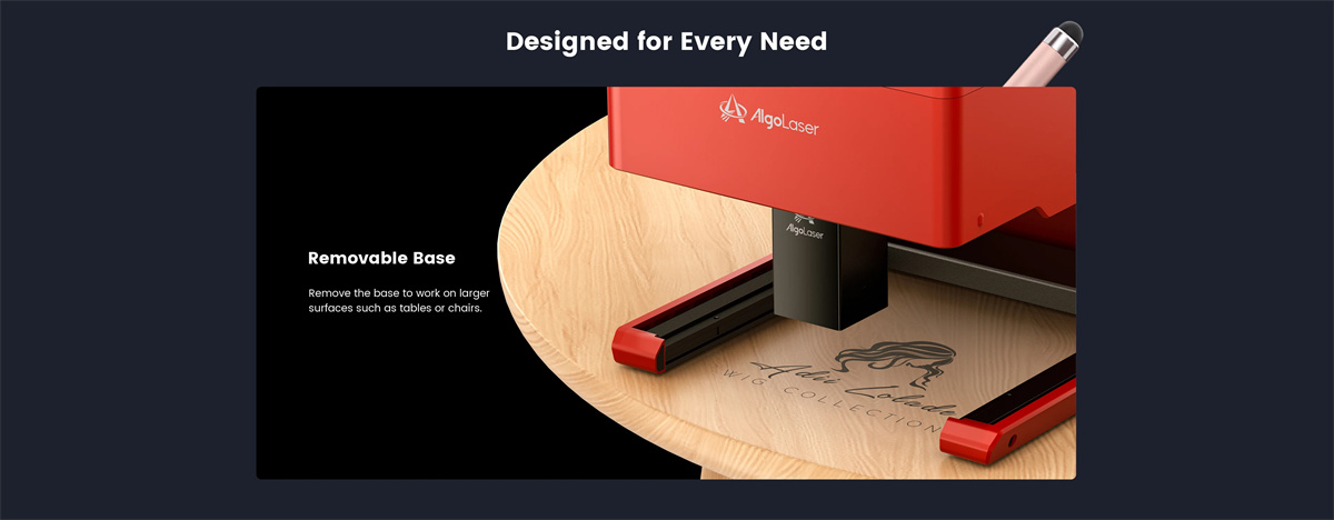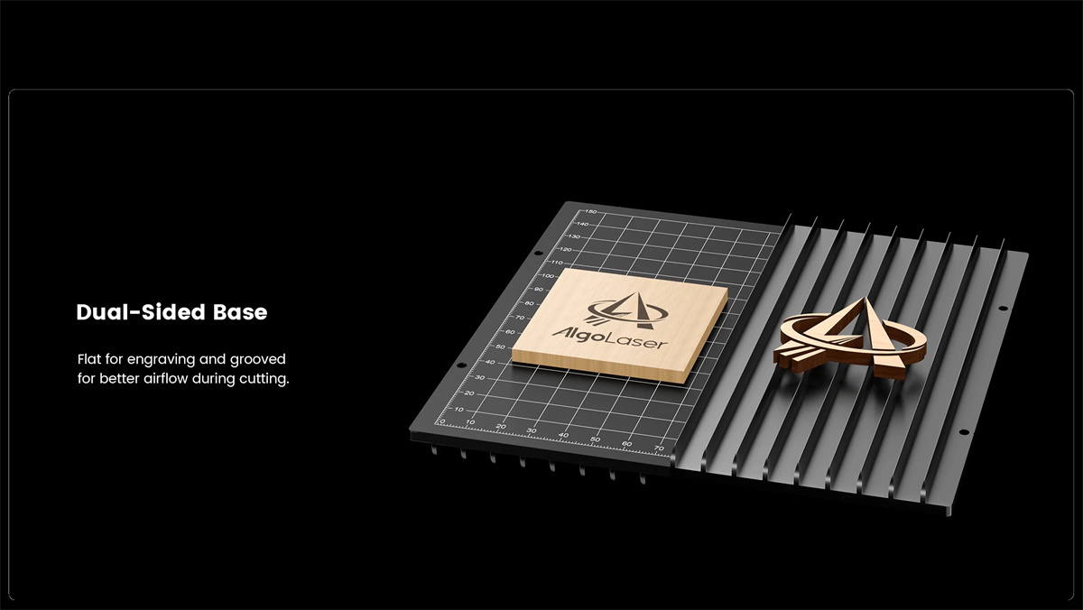 Base double face pour un usage polyvalent, plate pour la gravure et rainurée pour un meilleur flux d’air lors de la coupe. Avec le design unique de structure semi-ouverte, il n’y a pas de limitation en fonction de la taille des objets à graver. Vous pouvez les placer à l’intérieur de la machine ou mettre la machine sur la surface de certains grands objets pour effectuer les tâches.