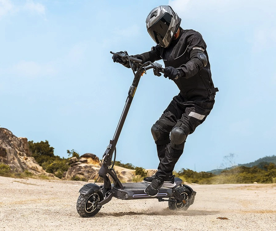 La trottinette électrique SR1 est conçue pour une expérience de conduite tout-terrain plus stable et plus agréable. Fabriquée en alliage d’aluminium forgé, elle est très résistante à la casse et peut supporter jusqu’à 130 kg. Sa suspension à double bras oscillant robuste, utilisant le système de train d’atterrissage d’un avion , offre une absorption optimale des chocs pour une conduite fluide digne d’un SUV, même sur terrain accidenté. Ses pneus à crampons de 10″ x 3″ sont épais et robustes, offrant une excellente résistance à l’usure et aux crevaisons, pour une glisse stable et fluide sur tous types de terrains.