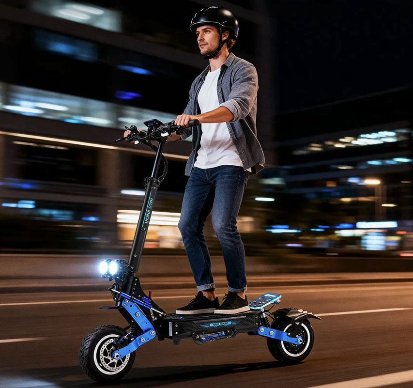 Équipé de 2 moteurs brushless de 3000 W, il atteint une vitesse de pointe de 95 km/h et gère facilement les pentes de 30°, rendant chaque trajet passionnant.