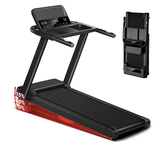 Ce tapis de course intelligent est équipé d’une console multifonction permettant de contrôler le démarrage/arrêt. Il propose 12 programmes de course scientifiques prédéfinis pour répondre à différents besoins. Trois écrans LED affichent les données d’entraînement en temps réel, notamment la durée, la distance, les calories, la vitesse et la fréquence cardiaque. Un grand espace de rangement permet de ranger des objets tels que des bouteilles d’eau, des téléphones portables et des tablettes, pour une expérience d’entraînement complète.